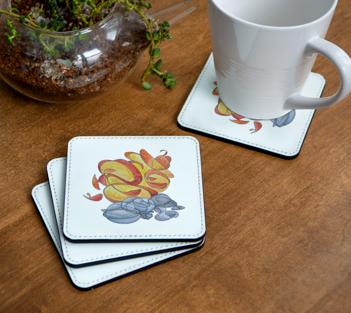 Protect your surfaces in style with custom printed coasters. Made from sturdy PVC, these standard size coasters feature vibrant, permanent sublimation prints on the front and a textured black backing for grip. Printed on-demand, coasters are both functional and fetching!